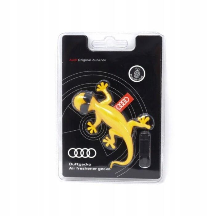 Audi orijinal Gecko hava spreyi, araç içi hava menfezlerinin kanatçıklarına kolayca takılabilen pratik bir tasarıma sahiptir. Meyveli kokusu ile aracınızın iç mekanına ferahlık katar ve 45 güne kadar etkili olur. Güneş gözlüklü sarı Geko figürü ile hem şık hem de eğlenceli bir görünüm sunar.